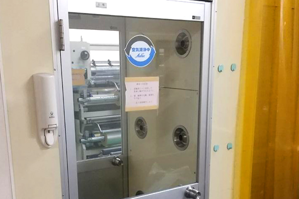 お客様のニーズにお応えする為、各種フィルムの原反をご要望の幅、長さに正確にカットし、迅速かつ高品質な製品とサービスを提供します。防塵性を高める為に各部屋に産業用空気清浄機を設置し、また出入口にエアーシャワーを完備する事により、衛生条件に対するご要望にも対応できる環境を実現しています。その他、原反の欠点・異物などを検品する検知機も設置しています。